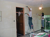 | 施主さま(若夫婦)自ら漆喰壁を塗っていただきました。 |